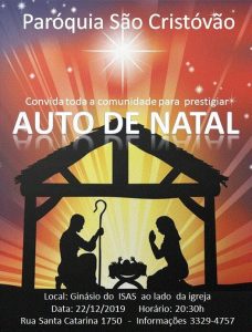 . A Secretaria Paroquial ficará fechada em Dezembro nos dias 23, 26 e 27. No dia 28 funcionará das 8h às 12h. Reabrirá no dia 02 de Janeiro de 2020.